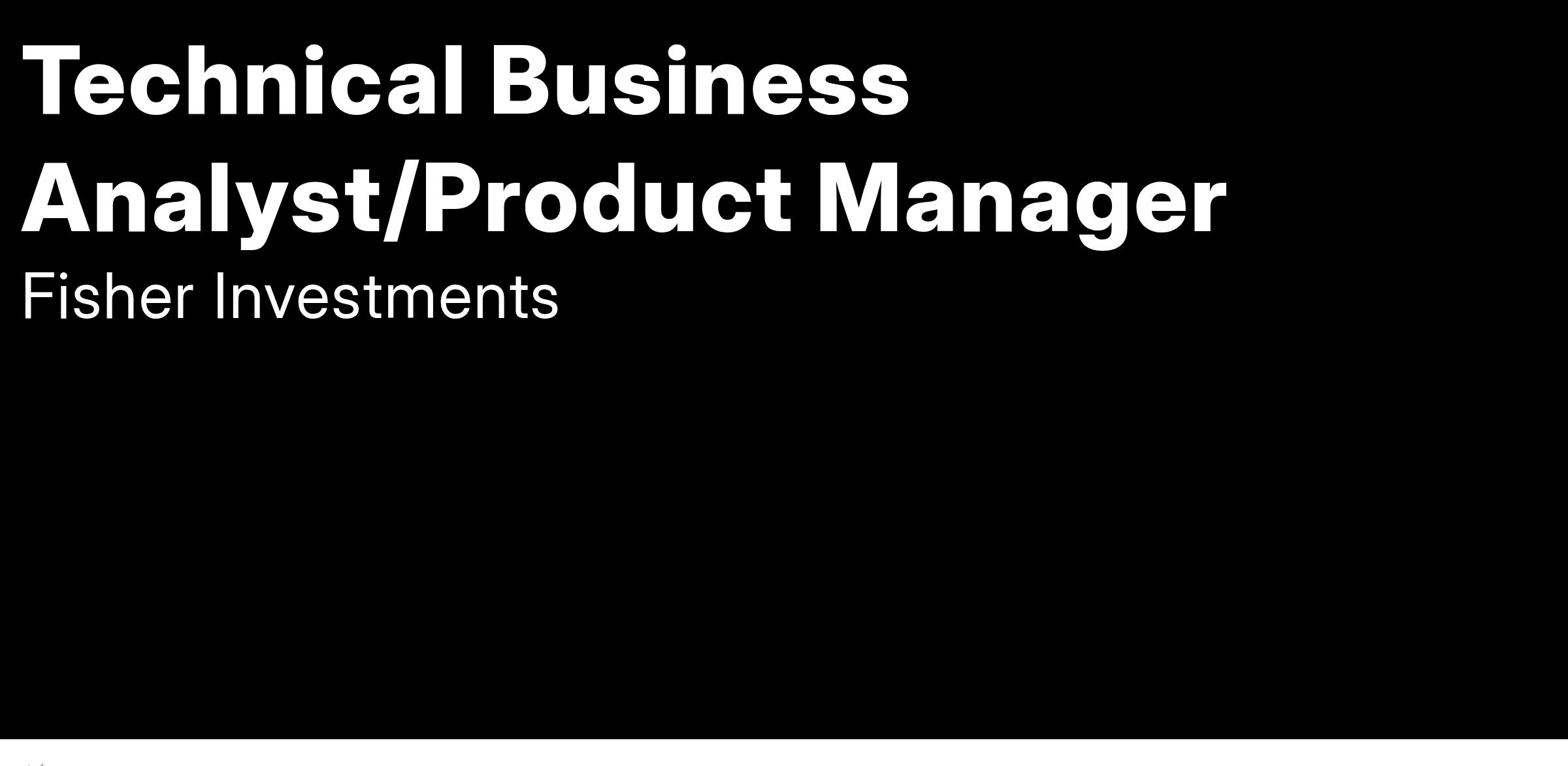 It's an exciting time to be a member of the Fisher Investments Technology Department. We're investing in the future of our firm's technology and are building our team to achieve global growth. We are looking for a Technical Business Analyst to support our Cloud Platform team. If you are looking for an opportunity to make an impact as we develop scalable and strategic solutions to support our global growth, we want to hear from you!